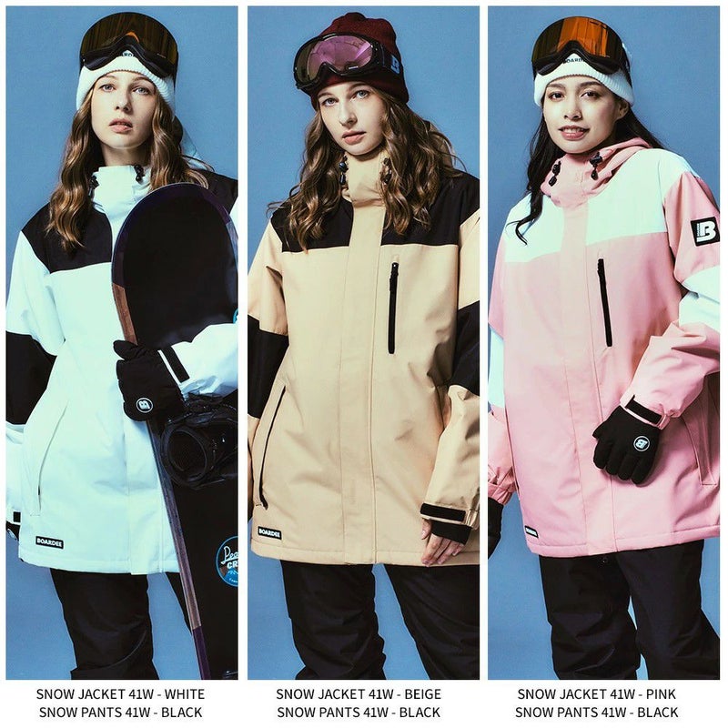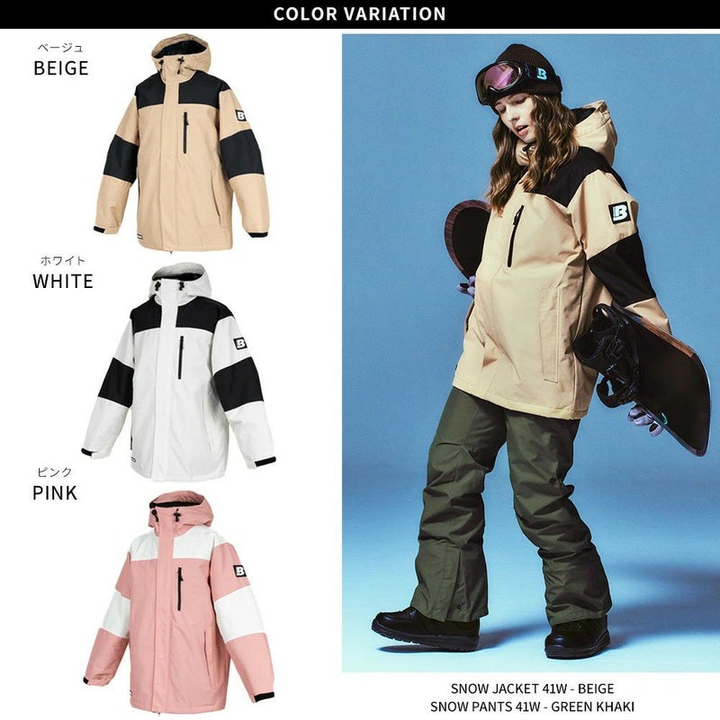 BOARDEE レディース スノーボードウェア ジャケット BD24IFOT41Wは、耐水圧20,000mm、透湿性1,500gのポリエステル素材を使用しています。