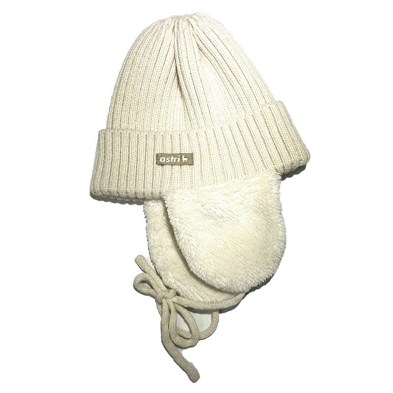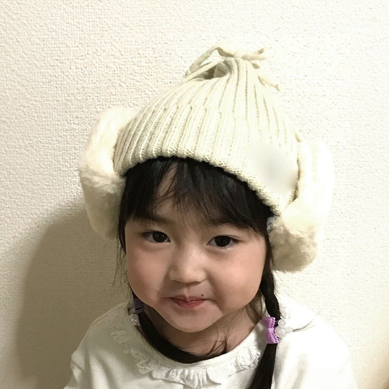 キッズ耳当て付き撥水リブニット帽