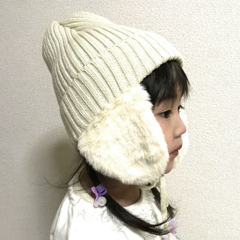 キッズ耳当て付き撥水リブニット帽