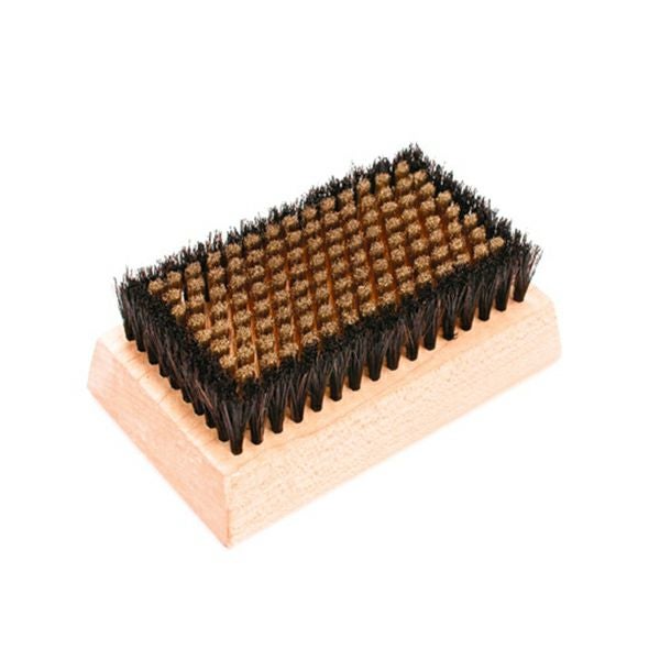 スティール&ホースヘアーコンビと並んで、もっとも使用範囲の広いブラシ。これ1本でソールのワックス除去から、仕上げまで使用することができます。きめ細かいブラスのまわりをホースヘアーが囲んでいるため、ブラスの毛足の広がりを押さえる効果もあります。