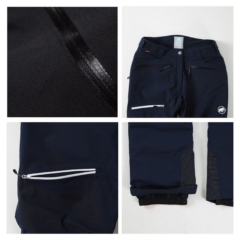 Stoney HS Thermo Pants Womenは、防風性と防水性に優れた2レイヤーMAMMUT DRYtechnology Pro素材を使用、どのような天候でもプロテクションを提供します。60g Ajungilak OTI Elementフィリングが優れた保温性を発揮する一方で、2つあるサイドジッパーによる温度調整も可能です。裾のカットが前側が若干短めで、スノーボードブーツ着用時のフィット感が抜群です。