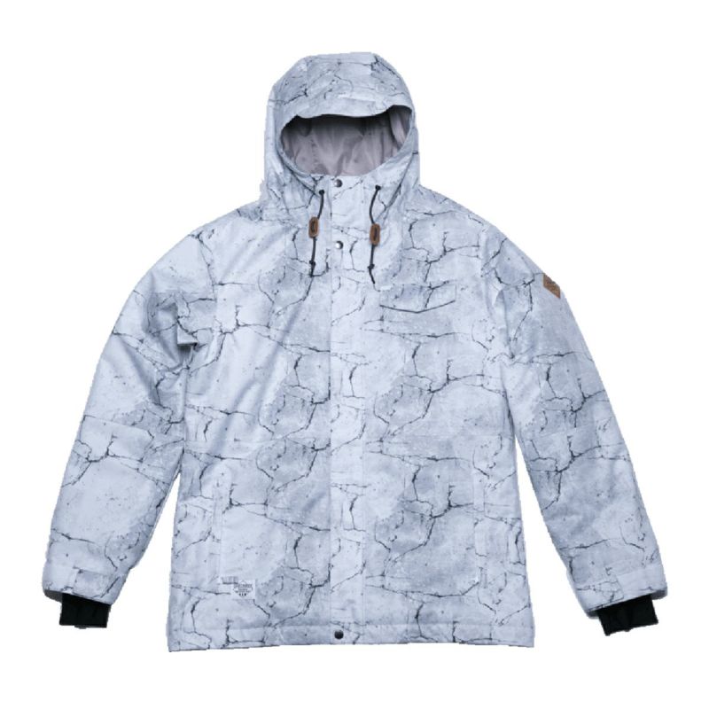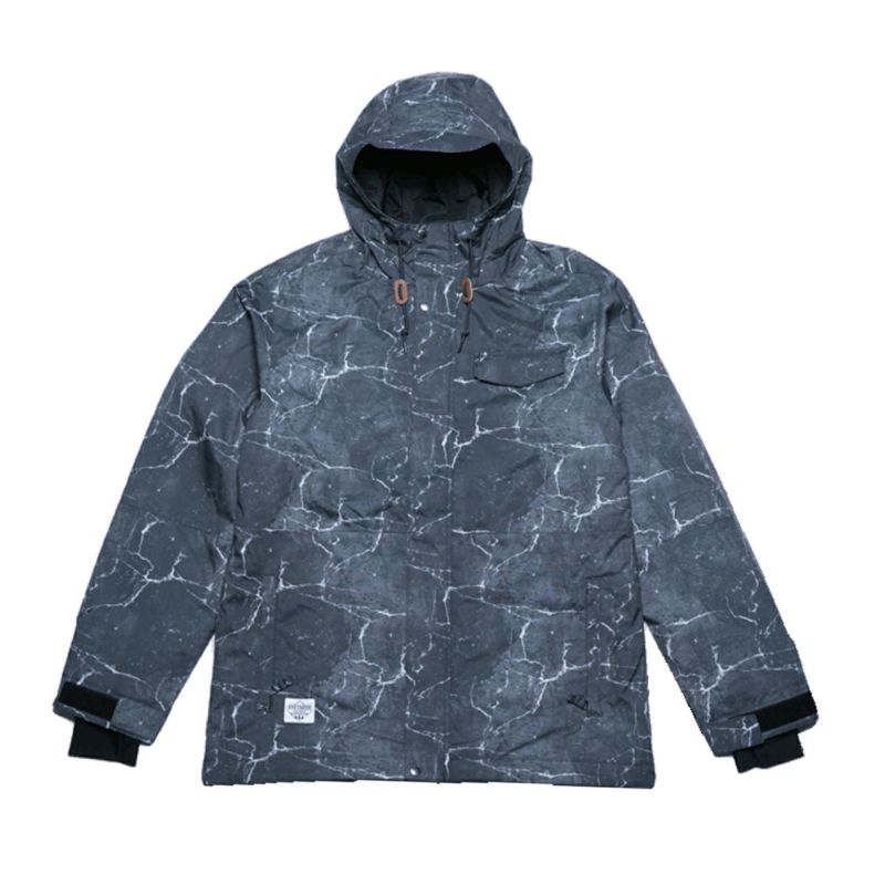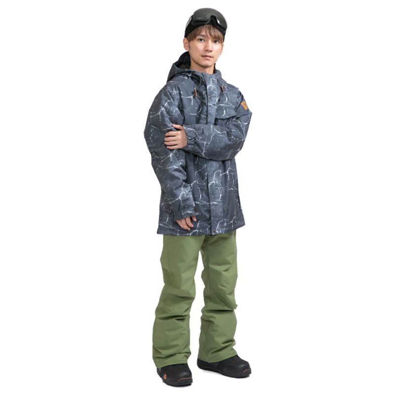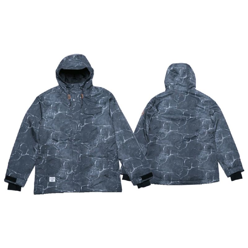 モノトーングランジ柄がかっこいいプリントジャケット。スノーボードだけではなくスノーボードヤーにも幅広く使っていただけるデザインとなっています。ストレッチ性を持つキャンバス素材を採用。素材は耐水10,000mm、透湿5,000g/m2/24hの高い機能を備えているので濡れにくく、中綿を入れることで防寒性がアップしていて暖かい!快適なライディングをサポートします!!